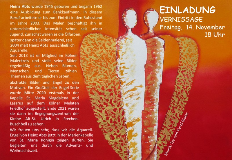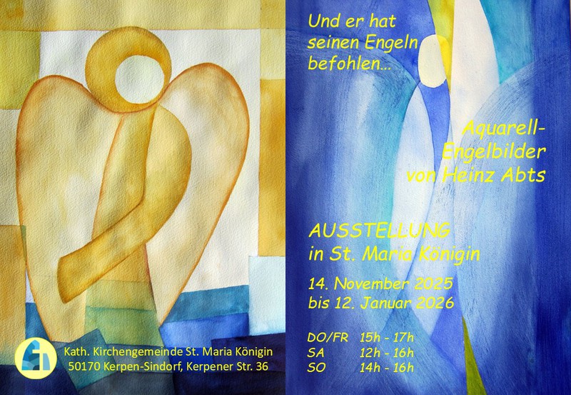 Ausstelung mit Engel-Aquarellen in der Marien-Kapelle der Kirche St. Maria Königin in Kerpen-Sindorf, 14.11.2025 bis 11.01.2026